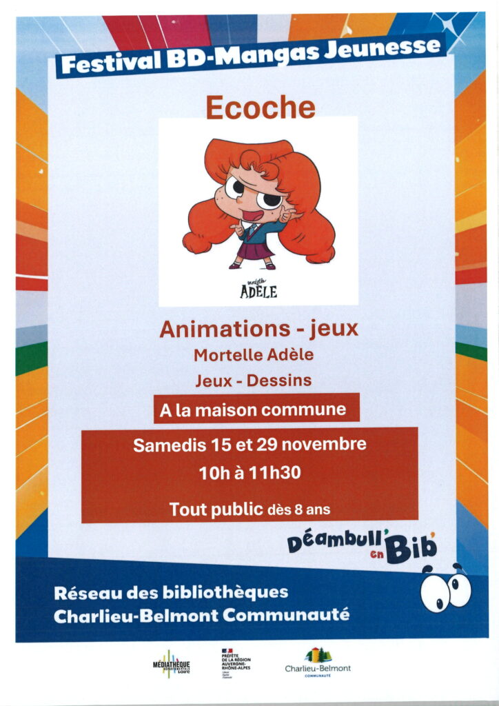 ANIMATION MORTELLE ADÈLE SAMEDI 15 ET 29 NOVEMBRE