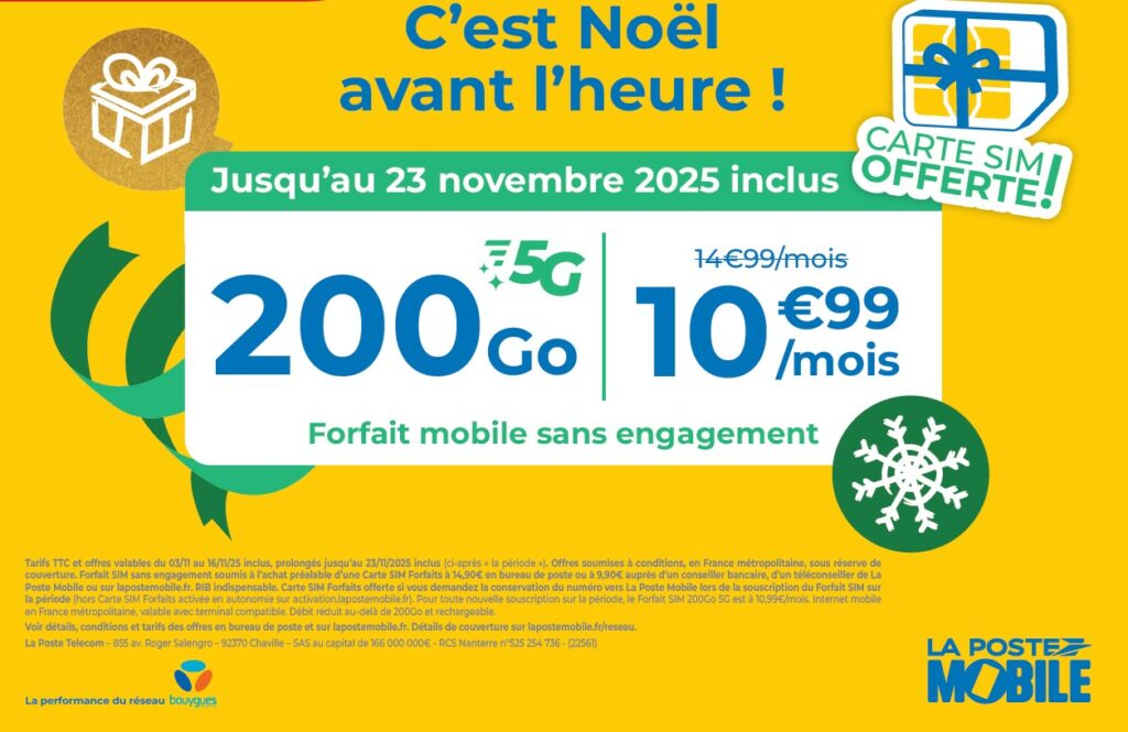 Côté téléphonie, la promo Forfait SIM 200Go est valable jusqu’au 23 novembre inclus :