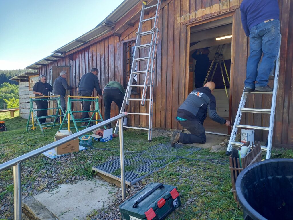 Les chasseurs d’Ecoche s’étaient donné rendez-vous samedi 10 Mai pour quelques travaux d’entretien de la cabane et du site de la Madone. Une dizaine de sociétaires ont joué du pinceau pour rafraîchir les murs extérieurs pendant que d’autres s’occupaient de l’intérieur.