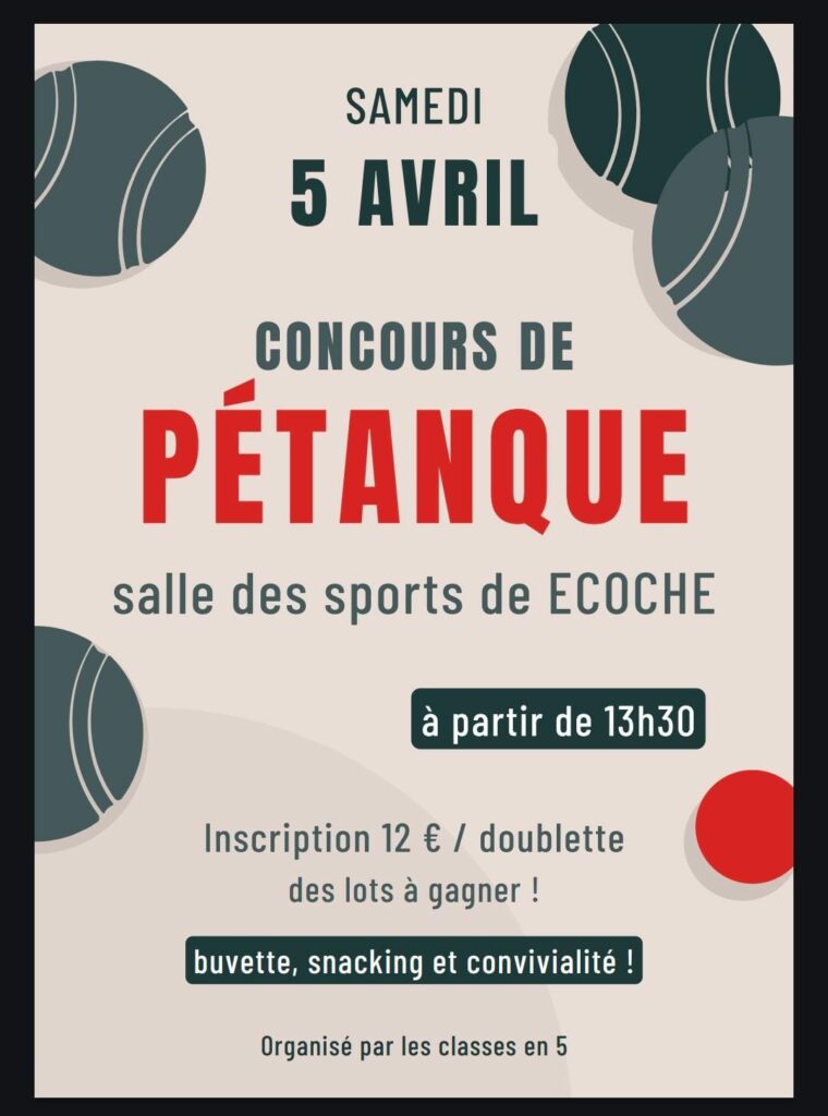 CONCOURS DE PÉTANQUE SAMEDI 5 AVRIL