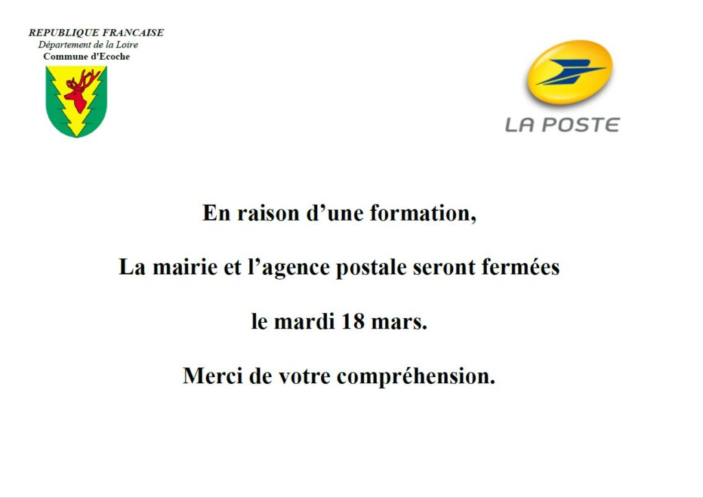 FERMETURE MAIRIE ET AGENCE POSTALE LE 18 MARS