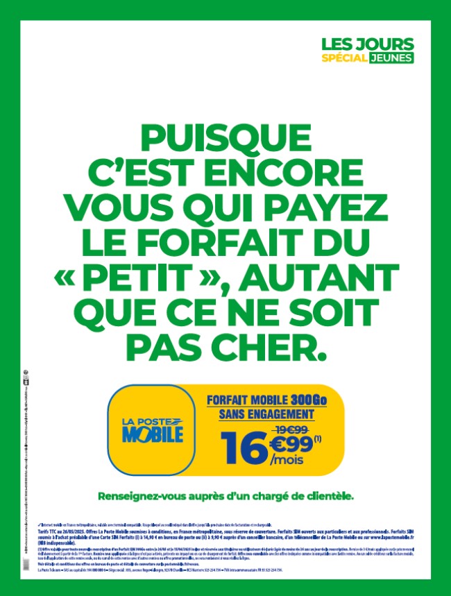 FORFAIT MOBILE 300 GO 16.99€ PAR MOIS SANS ENGAGEMENT POUR LES MOINS DE 26 ANS. PRIX APPLICABLE MÊME APRÈS LES 25 ANS DU CLIENT.