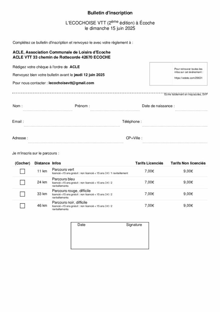 INSCRIPTION ECOCHOISE VTT POUR LE 15 JUIN 2025