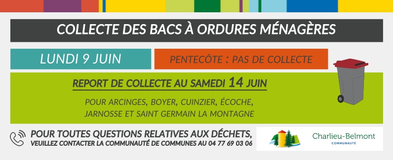 – Report de collecte au samedi 14 juin 2025 pour Arcinges, Boyer, Cuinzier, Ecoche, Jarnosse et Saint-Germain-la-Montagne